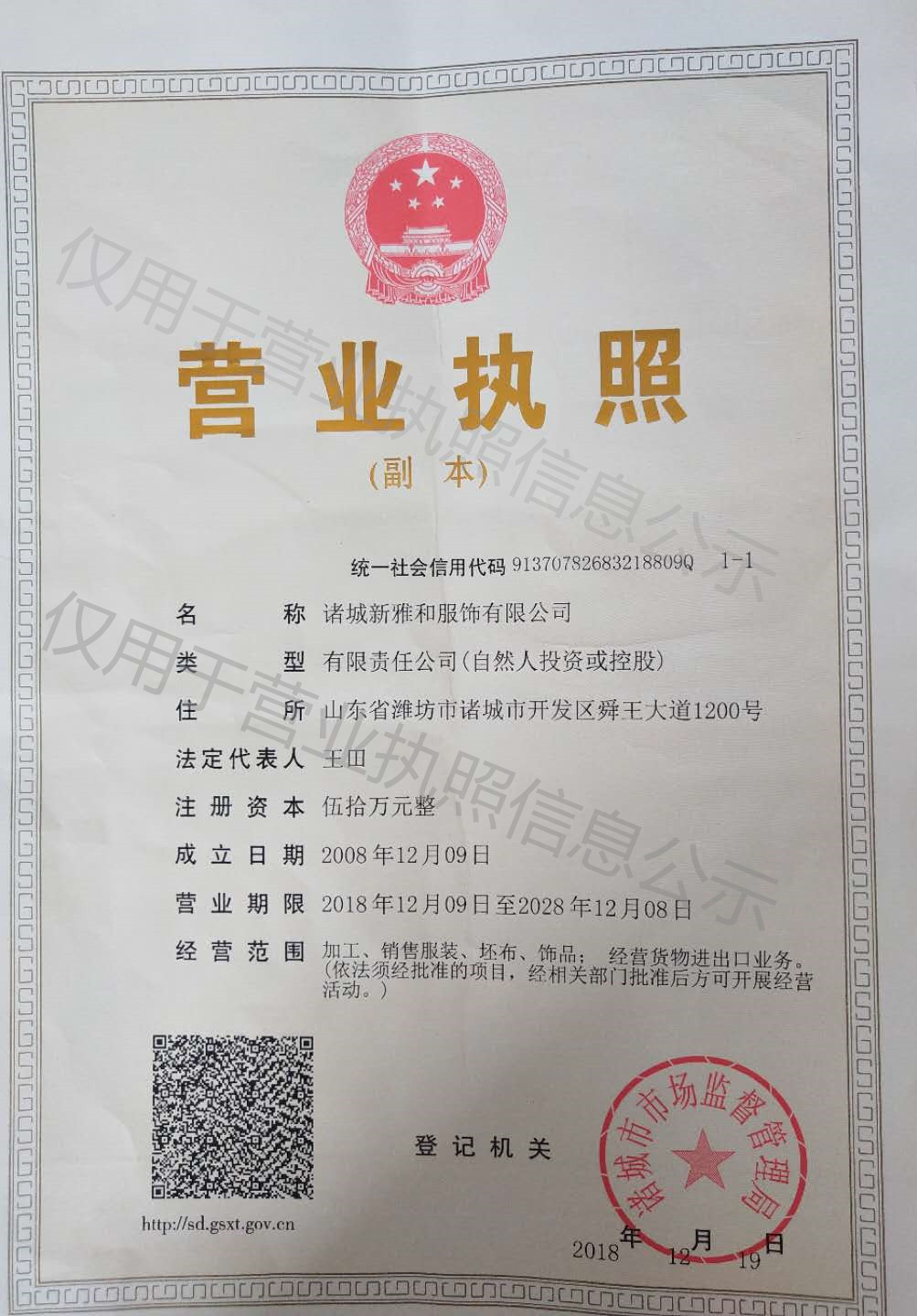 諸城新雅和服飾有限公司是一家擁有自營(yíng)進(jìn)出口權(quán)、集貿(mào)工一體的現(xiàn)代化針織服裝加工出口企業(yè)。公司座落在諸城開發(fā)區(qū)橫四路北206國(guó)道以東。公司現(xiàn)有現(xiàn)代化日本進(jìn)口電腦縫制設(shè)備200多臺(tái)套,職工300人,年出口創(chuàng)匯1000萬(wàn)美元。公司擁有一個(gè)團(tuán)結(jié)務(wù)實(shí)、業(yè)務(wù)嫻熟、反應(yīng)迅速、年輕化、現(xiàn)代化的管理團(tuán)隊(duì)。